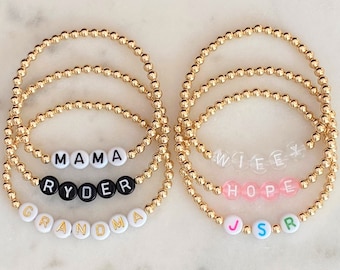 14k Gold Filled Personalized Beaded Stretch Name Etsy In 2022 Pony Bead Bracelets Beads Bracelet Design Beaded Bracelets Diy
